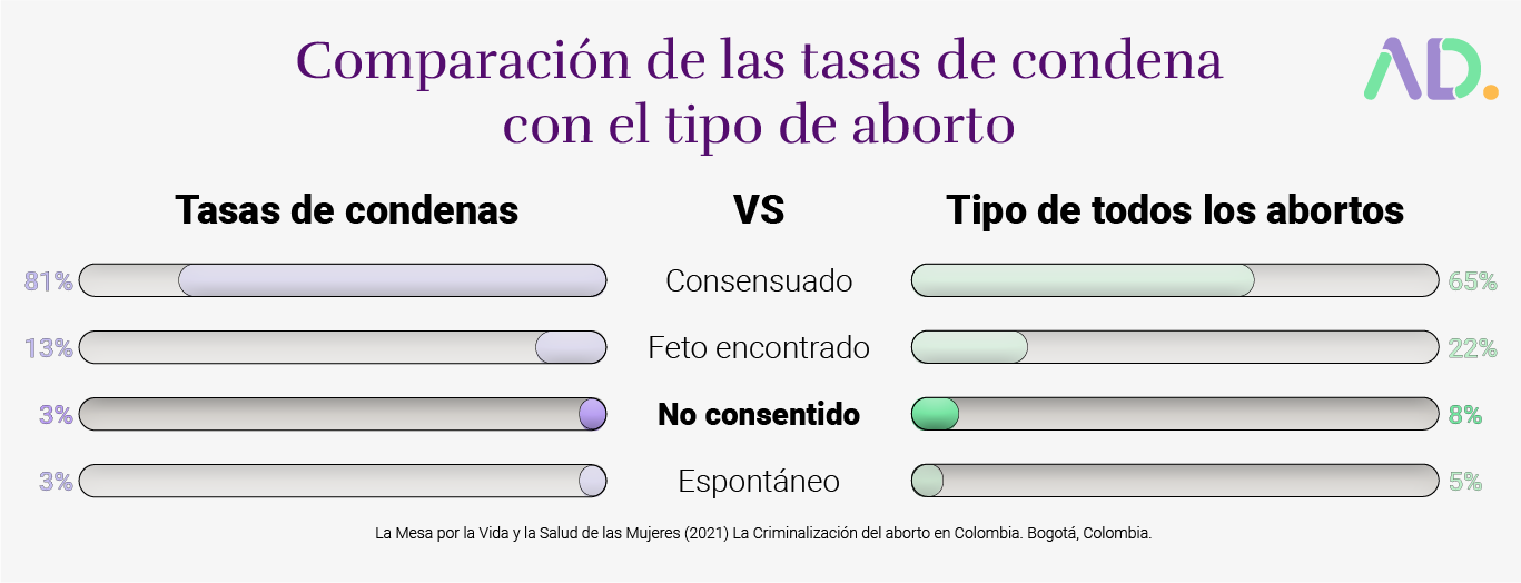 Colombia tiene un bajo nivel de criminalización de los abortos no consentidos. Sólo el 2,9% de los casos de aborto se presentan ante la Corte en relación con este delito 12.