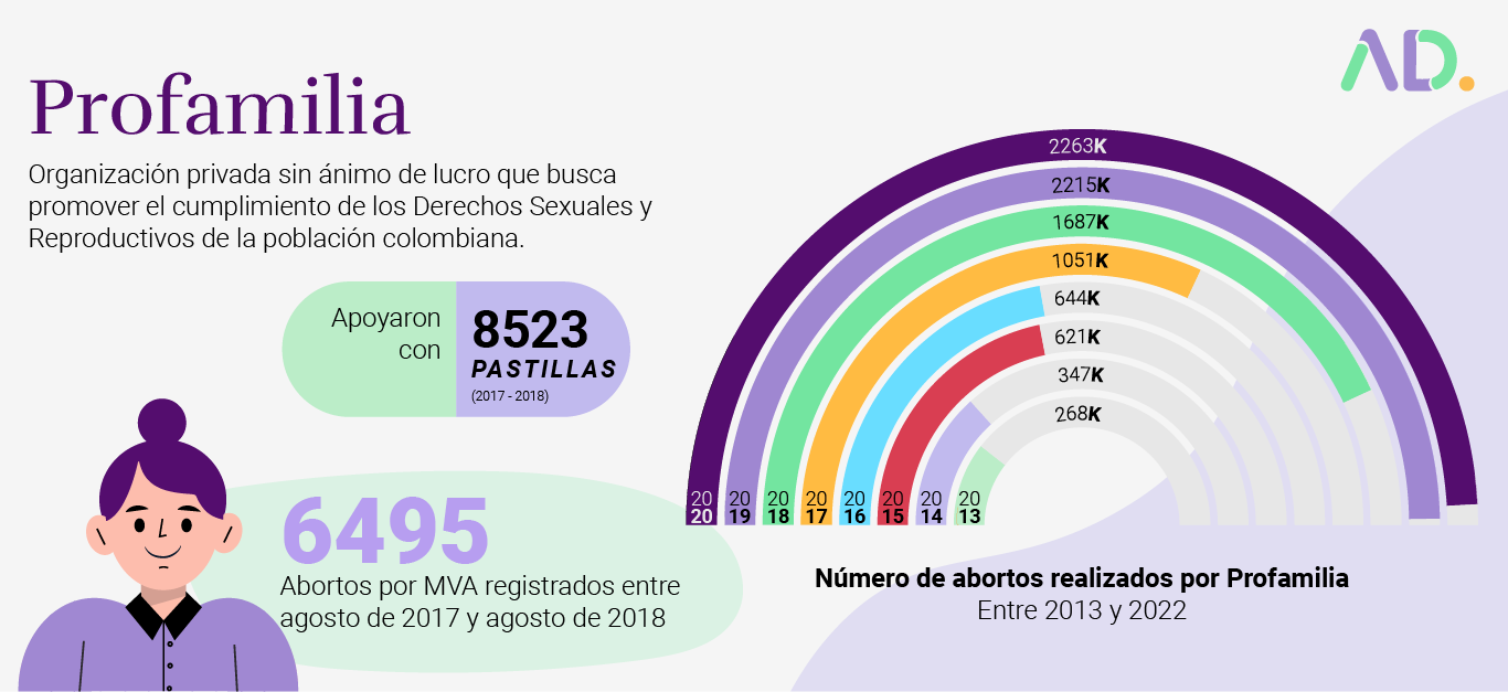 La organización Profamilia registró 6495 abortos por AMEU entre agosto de 2017 a agosto de 2018, en este mismo periodo de tiempo apoyan 8523 con pastillas.